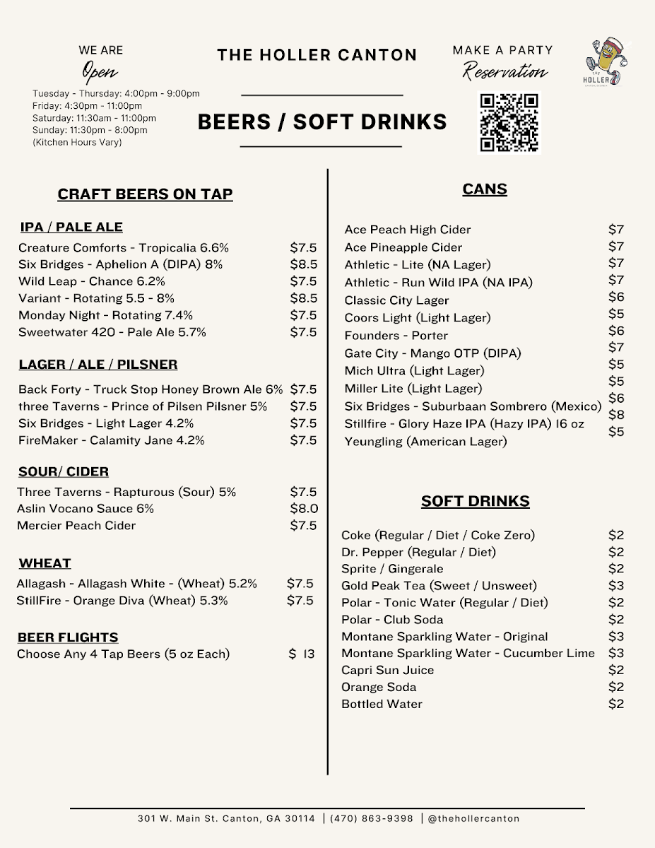 Welcome to The Holler, a vibrant gem nestled in downtown Canton, Georgia. This lively establishment offers a delightful menu that caters to both your taste buds and your social spirit. With a focus on community, The Holler boasts an exceptional selection of craft beers and ciders, ensuring the perfect pairing for any meal.